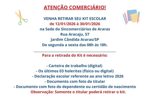 Atenção Comerciário! Venha retirar seu Kit Escolar 2026